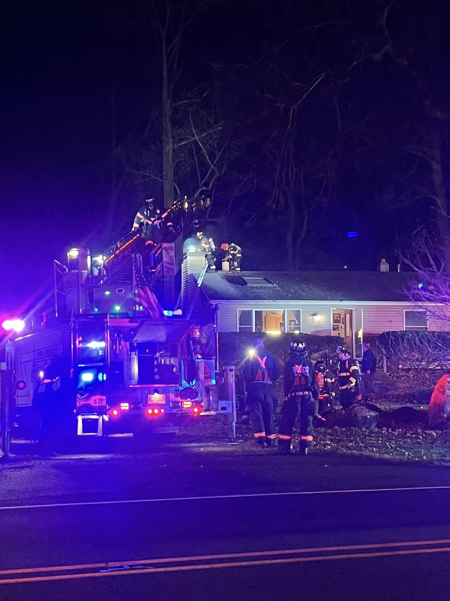 Tonight at 17:25hrs, WAFCco responded to a reported chimney fire in the 200 block of Mount Airy Harbourton Road. Battalion 26(Siwy),arrived within six minutes of dispatch, confirming the chimney fire and establishing command. Rescue Engine 17 arrived and entered the structure to conduct a further investigation, while Quint 26 positioned its main and ground ladders. Lieutenant 17-1 assumed operations. Tender 48-1 established a water supply to Quint 26. BC Engine 46, HC Engine 47, Chief, and Deputy 47 arrived, establishing a manpower pool. Crews deployed chimney chains investigated and check for extension, discovering fire in the structure surrounding the chimney. The area was opened up, and the fire was extinguished and brought under control within one hour. WAPD handeled traffic controland a BLS Unit stood by.