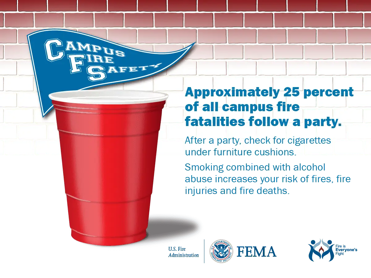 • Alcohol was a factor in 76 percent of fatal campus fires.